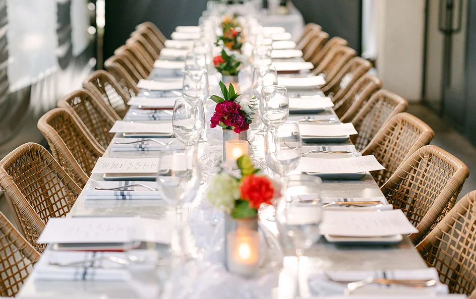 We love when guests make our space their own by adding special touches. Centerpieces, candles, balloons attached to weights, and table runners are all great ways to customize the space. In order to ensure future guests can have the same custom experience, we don’t allow anything that will stick around any longer than your event. These include, but are not limited to: feathers, confetti, adhesives on any surfaces, loose balloons, and of course, glitter (yes, it is flashy and fun, but it lasts forever.)